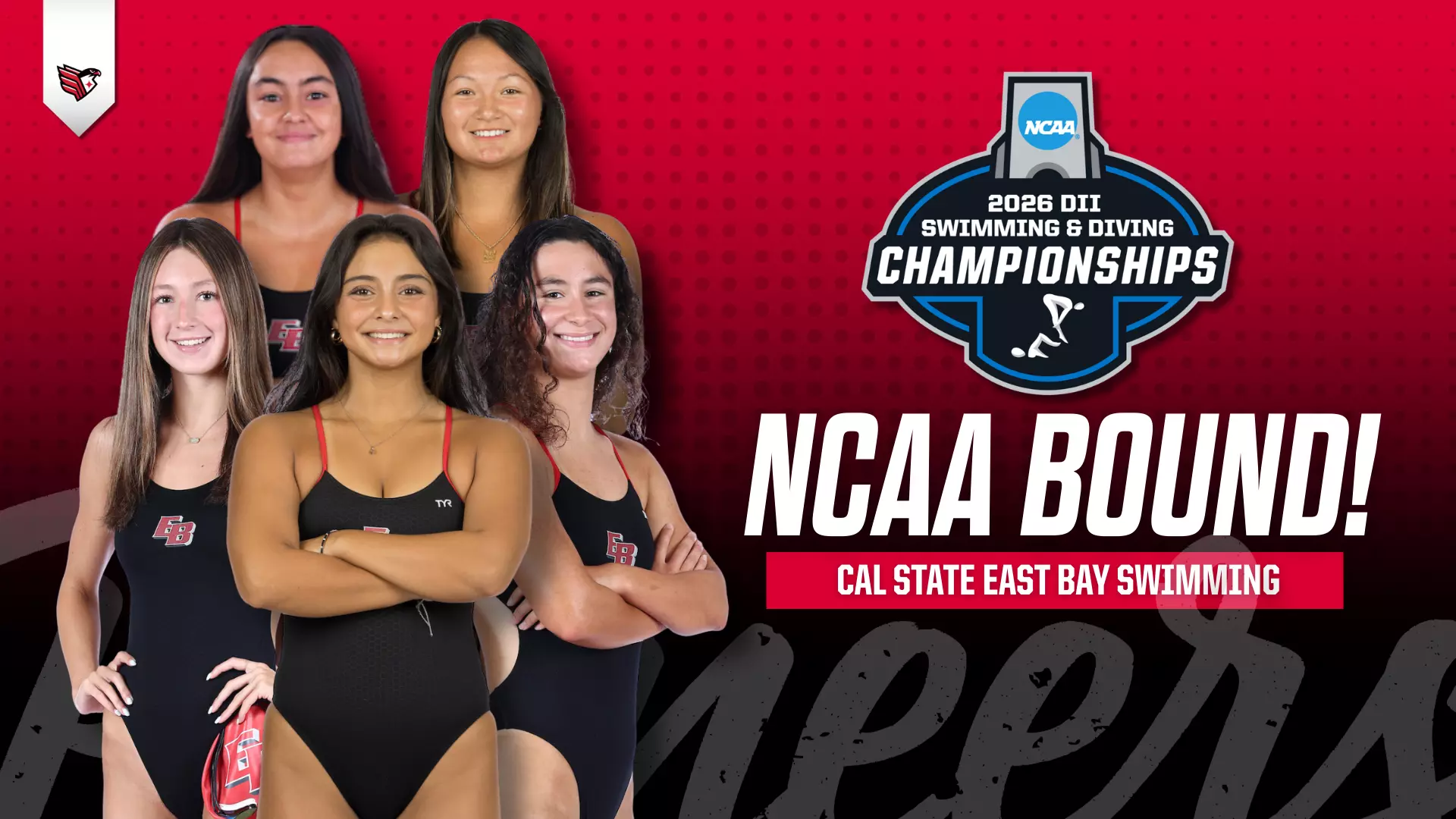 INDIANAPOLIS — Five Cal State East Bay swimmers have earned individual invitations to the 2026 NCAA Division II Swimming & Diving Championships, set for March 10–14 at the Deaconess Aquatic Center in Evansville, Indiana. The Pioneer qualifiers head to nationals fresh off winning the team title at the 2026 PCSC Swimming & Diving Championships, adding momentum to a season already marked by record-setting performances and postseason breakthroughs. Kylie Beaudet, Maggie Clemens, Alexia Fajardo, Malana Kollath and Tehani Kong were the five selected as individuals to compete in Evansville.
